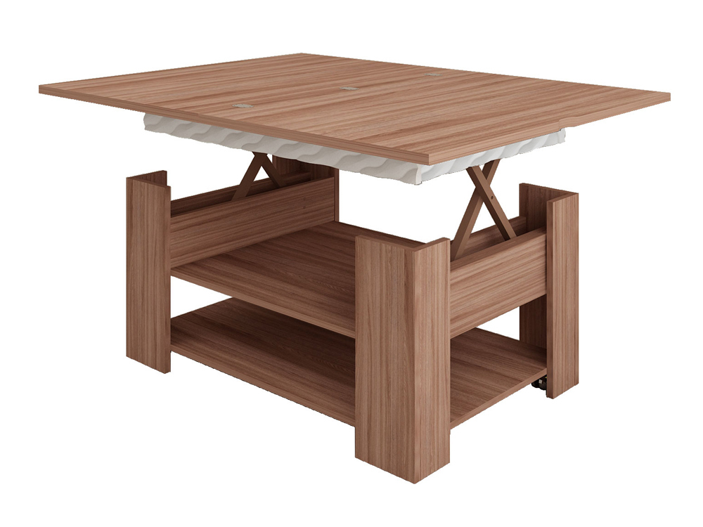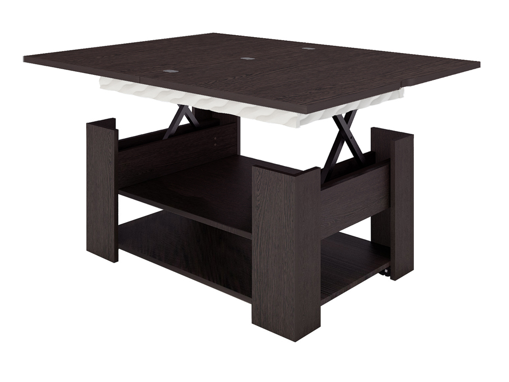 «Агат 27» – это многофункциональная модель, которая сочетает в себе функции журнального и обеденного столов. Cтолешница легко увеличивается вдвое благодаря поворотному механизму.