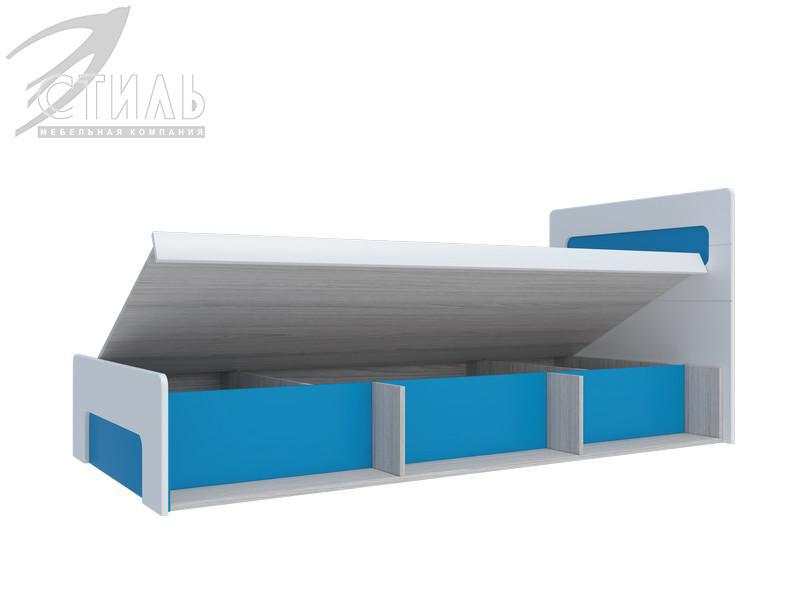 - Кровать имеет металлические подъемные механизмы и секции для хранения.