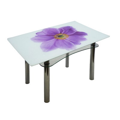 Стеклянный стол для кухни, модель Ян 1. Столешница стекло триплекс с фотопечатью изображения, артикул изображения (флора 96). Полка прозрачное стекло.